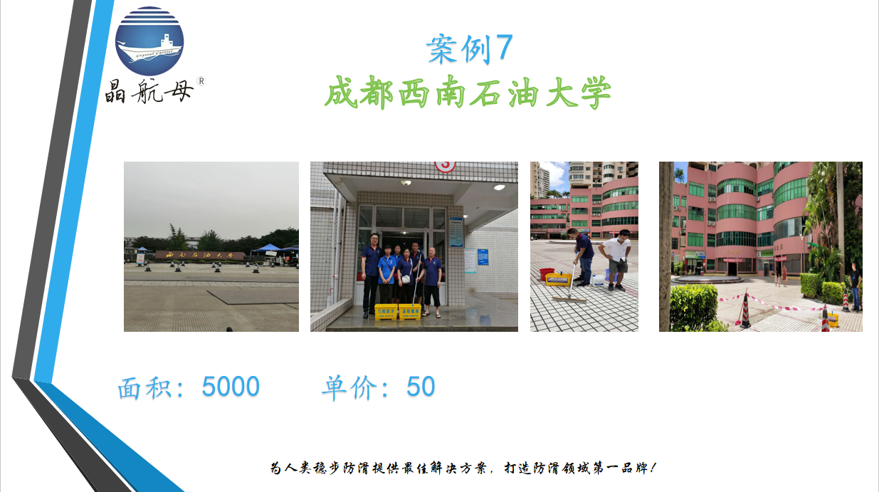 晶航始終堅持“以技術求生存、以市場為向?qū)А⒁匀藶楸尽⒁苑諡樽谥迹笳鎰諏崱钡慕?jīng)營理念,引進ISO9001品質(zhì)管理模式和ISO14001環(huán)境認證。以雄厚的實力,超前的市場意識,敏捷的科學決策,致力于成為中國防滑事業(yè)領域的領航者和創(chuàng)新者,為人們的行走安全貢獻我們的力量!